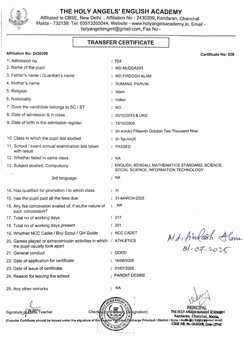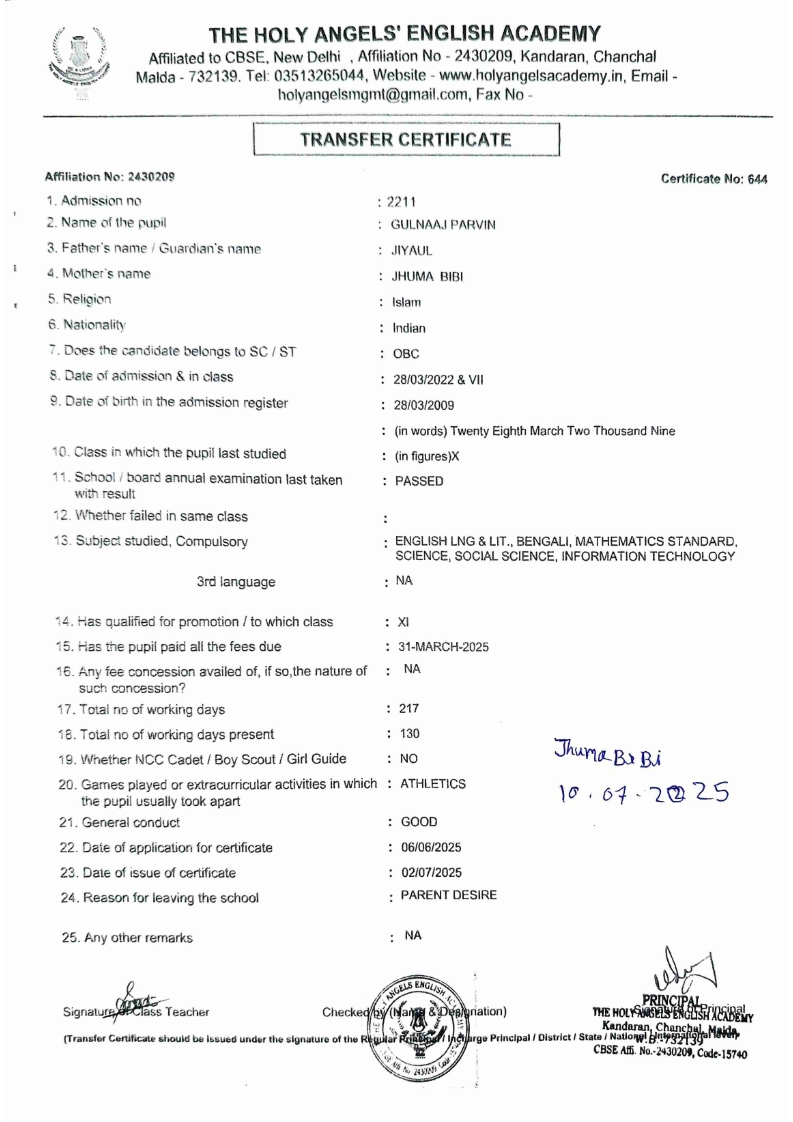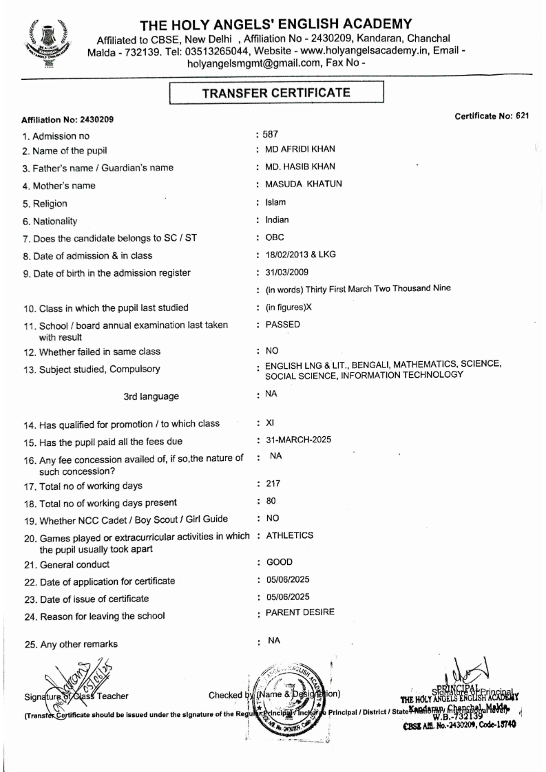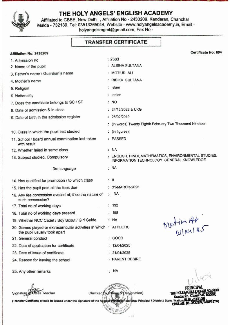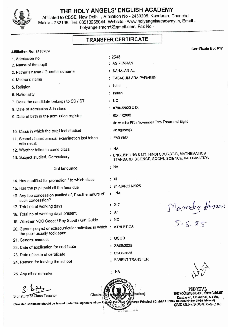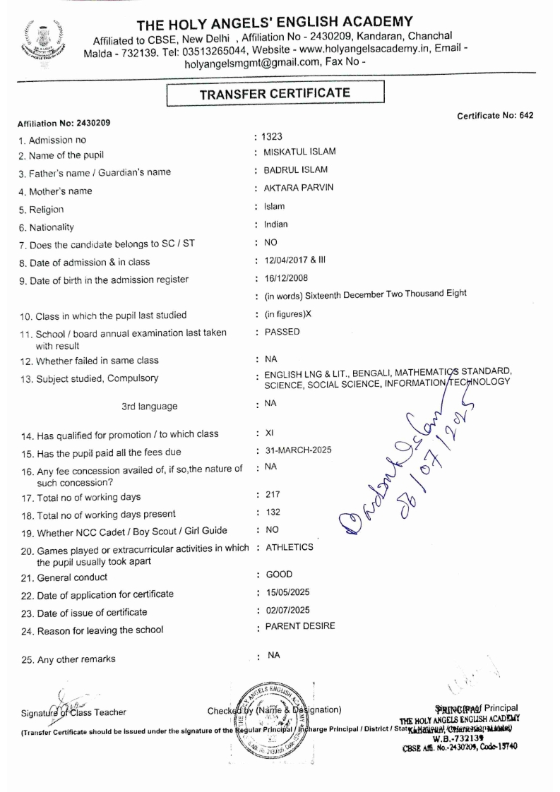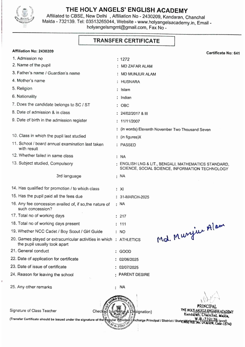 SLC Download TC link School Leaving Certificate : 2024-2026 587 ‒ AARAV MONDAL, Adm No: 1921 , IV - JUPITER Click to view 588 ‒ ADIY ABAN, Adm No: 2001 , IV - MARS Click to view 589 ‒ SHAKEEL AHMAD, Adm No: 2731 , IV - JUPITER Click to view 590 ‒ ALAFFAN ALAM, Adm No: 1086 , VII - ROHINI Click to view 591 ‒ AL NAFISH, Adm No: 2292 , VII - ARYABHATTA Click to view 592 ‒ SARAH SHAIKH, Adm No: 2445 , VI - BHASKAR Click to view 593 Click to view 594 ‒ MD ZISHAN, Adm No: 2267 , VI - ROHINI Click to view 595 ‒ AFEEZA PARVEEN, Adm No: 1273 , VIII - ROHINI Click to view 596 ‒ AYUSH SAHA, Adm No: 2314 , VII - BHASKAR Click to view 597 ‒ MD SAKIBULLAH, Adm No: 2243 , V - MARS Click to view 598 ‒ LALJIT MISRA, Adm No: 1339 , V - VENUS Click to view 599 ‒ ROMANA HOSSAIN, Adm No: 2833 , BALVATIKA-3 - LITTLE HEART Click to view 600 ‒ KAINAT HOSSAIN, Adm No: 2834 , III - JUPITER Click to view 601 ‒ MUNIRA YASMIN, Adm No: 2579 , I - LITTLE HEART Click to view 602 ‒ AYUSH CHOUDHURY, Adm No: 2523 , IV - MARS Click to view 603 Click to view 604 ‒ ALISHA SULTANA, Adm No: 2383 , I - LITTLE HEART Click to view 605 ‒ RUDRA DAS, Adm No: 1824 , V - VENUS Click to view 606 ‒ ARADHYA DAS, Adm No: 2444 , VI - ARYABHATTA Click to view 607 ‒ SUHANA AFROSE, Adm No: 806 , VIII - ARYABHATTA Click to view 608 Click to view 609 ‒ TANVEER RAHMAN, Adm No: 1686 , VI - ARYABHATTA Click to view 610 Click to view 611 ‒ AARADHYA SONI, Adm No: 2013 , X - ARYABHATTA Click to view 612 ‒ ANSHIKA AGARWAL, Adm No: 2782 , VII - BHASKAR Click to view 613 ‒ MAHAMUDA SULTANA, Adm No: 1408 , V - VENUS Click to view 614 ‒ SHAMMIN KHATUN, Adm No: 1173 , X - ROHINI Click to view 615 Click to view 616 ‒ SHUVANGI CHOUDHURY, Adm No: 779 , X - ARYABHATTA Click to view 617 ‒ ASIF IMRAN, Adm No: 2543 , X - ROHINI Click to view 618 ‒ JOYITA PAL, Adm No: 707 , X - ROHINI Click to view 619 ‒ MUSKAN SHARMA, Adm No: 1236 , X - ROHINI Click to view 620 ‒ RAMDEV KARMAKAR, Adm No: 911 , X - ARYABHATTA Click to view 621 ‒ MD AFRIDI KHAN, Adm No: 587 , X - ROHINI Click to view 622 ‒ SUDIPTO MANDAL, Adm No: 2668 , VI - BHASKAR Click to view 623 ‒ SHIBANGI DAS, Adm No: 745 , X - ROHINI Click to view 624 ‒ SAFIUR RAHAMAN, Adm No: 2276 , X - ROHINI Click to view 625 ‒ ASHISH KUMAR, Adm No: 1551 , X - ARYABHATTA Click to view 626 ‒ TUSAR PODDAR, Adm No: 908 , X - ARYABHATTA Click to view 627 ‒ JAYDEB MANDAL, Adm No: 723 , X - ARYABHATTA Click to view 628 ‒ MUDDASSIR HOQUE, Adm No: 1065 , X - ARYABHATTA Click to view 629 ‒ SUSHMITA DAS, Adm No: 1014 , X - ROHINI Click to view 630 ‒ TRISHA SAHAAdm No: 1854 , IV - MARS Click to view 631 ‒ MD SAKIB, Adm No: 2252 , IV - JUPITER Click to view 632 ‒ SHUBHANGI MANDAL, Adm No: 1582 , VI - BHASKAR Click to view 633 ‒ ARGHODEEP GOSWAMI, Adm No: 1552 , X - ARYABHATTA Click to view 634 ‒ AMMAR IBNE JAKIR, Adm No: 958 , X - ROHINI Click to view 635 ‒ MD FARHAN ISLAM, Adm No: 632 , X - ROHINI Click to view 636 ‒ MD. MUDDASIR, Adm No: 704 , X - ROHINI Click to view 637 ‒ PRATIK THOKDAR, Adm No: 307 , XII - CBSE SCIENCE - A Click to view 638 ‒ ANJALI RAJ, Adm No: 1790 , X - ROHINI Click to view 639 ‒ ASRAF ALI, Adm No: 544 , X - ARYABHATTA Click to view 640 ‒ MASUD ALAM, Adm No: 1036 , X - ARYABHATTA Click to view 641 ‒ MD. ZAFAR ALAM, Adm No: 1272 , X - ROHINI Click to view 642 ‒ MISKATUL ISLAM, Adm No: 1323 , X - ARYABHATTA Click to view 643 ‒ DEBRAJ GHOSH, Adm No: 636 , X - ROHINI Click to view 644 ‒ GULNAAJ PARVIN, Adm No: 2211 , X - ROHINI Click to view 645 ‒ ANJUMANARA, Adm No: 782 , X - ARYABHATTA Click to view 646 ‒ SADIA PERVIN, Adm No: 784 , X - ROHINI Click to view 647 Click to view 470-SHUVADEEP ROY Adm. No-2194, Class-IX Click to view 647 ‒ ARITRIK CHAKRABORTY, Adm No: 555 , XII - CBSE COMMERCE - A Click to view 648 ‒ SUBHASISH THOKDAR, Adm No: 977 , X - ROHINI Click to view 649 ‒ UTSAV ROY, Adm No: 617 , XII - CBSE SCIENCE - A Click to view 650 ‒ ARKAJYOTI THOKDAR, Adm No: 2601 , XII - CBSE SCIENCE - A Click to view 651 ‒ SHAHIN PARVEJ RANA, Adm No: 2409. , XII - CBSE ARTS - A Click to view 652 ‒ AMAN KUMAR, Adm No: 1197 , X - ARYABHATTA Click to view 653 ‒ NAJERA PARVIN, Adm No: 1279 , X - ROHINI Click to view 654 ‒ TRISHNA GUPTA, Adm No: 1335 , X - ARYABHATTA Click to view 655 ‒ SRISHTI KUMARI, Adm No: 2587 , X - ARYABHATTA Click to view 656 ‒ MANDEEP KUMAR, Adm No: 2611 , VII - BHASKAR Click to view 657 ‒ SNEHA CHATTERJEE, Adm No: 2563 , XII - CBSE SCIENCE - A Click to view 660 ‒ NAMIT AGARWAL, Adm No: 1392 , VI - ROHINI Click to view 661 ‒ TAPASYA AGARWALA, Adm No: 621 , X - ROHINI Click to view 662 ‒ NAJIL KHANAdm No: 1404 , XI - CBSE COMMERCE - A Click to view 663 ‒ TOHIDUR RAHAMAN, Adm No: 2593 , XII - CBSE SCIENCE - A Click to view 664 ‒ SUBHAM SARAF, Adm No: 2195 , X - ROHINI Click to view 665 ‒ SK. JISAN AHAMED, Adm No: 414 , XII - CBSE COMMERCE - A Click to view 666 ‒ SOHAN ANSARI, Adm No: 376 , XII - CBSE COMMERCE - A Click to view 667 ‒ JOYITA SINGHA, Adm No: 2075 , X - ARYABHATTA Click to view 668 ‒ BHUMIKA DAS, Adm No: 2558 , XII - CBSE COMMERCE - A Click to view 669 ‒ MD. ROUNAK ABRAR HOSSAIN, Adm No: 437 , XII - CBSE SCIENCE - A Click to view 670 ‒ ANKITA MANDAL, Adm No: 938 , X - ROHINI Click to view 671 ‒ KANKAN MANDAL, Adm No: 1919 , X - ROHINI Click to view 672 ‒ DEBOJYOTY RAM, Adm No: 768 , X - ROHINI Click to view 673 ‒ SUNNY MANDAL, Adm No: 720 , XII - CBSE COMMERCE - A Click to view 674 ‒ JUMAIL AHIL NIZAMI, Adm No: 2534 , X - ARYABHATTA Click to view 675 ‒ MD FARHAN, Adm No: 2160 , X - ARYABHATTA Click to view 676 ‒ AYUSH RAJ, Adm No: 385 , XII - CBSE SCIENCE - A Click to view 677 ‒ SAACHI JADAV, Adm No: 1577 , X - ARYABHATTA Click to view 678 ‒ ASGAR ALI, Adm No: 663 , X - ARYABHATTA Click to view 679 ‒ FAHAD MAHMOOD, Adm No: 919 , X - ROHINI Click to view 680 ‒ DAIWIK SINGHANIAAdm No: 1029 , IX - ROHINI Click to view 