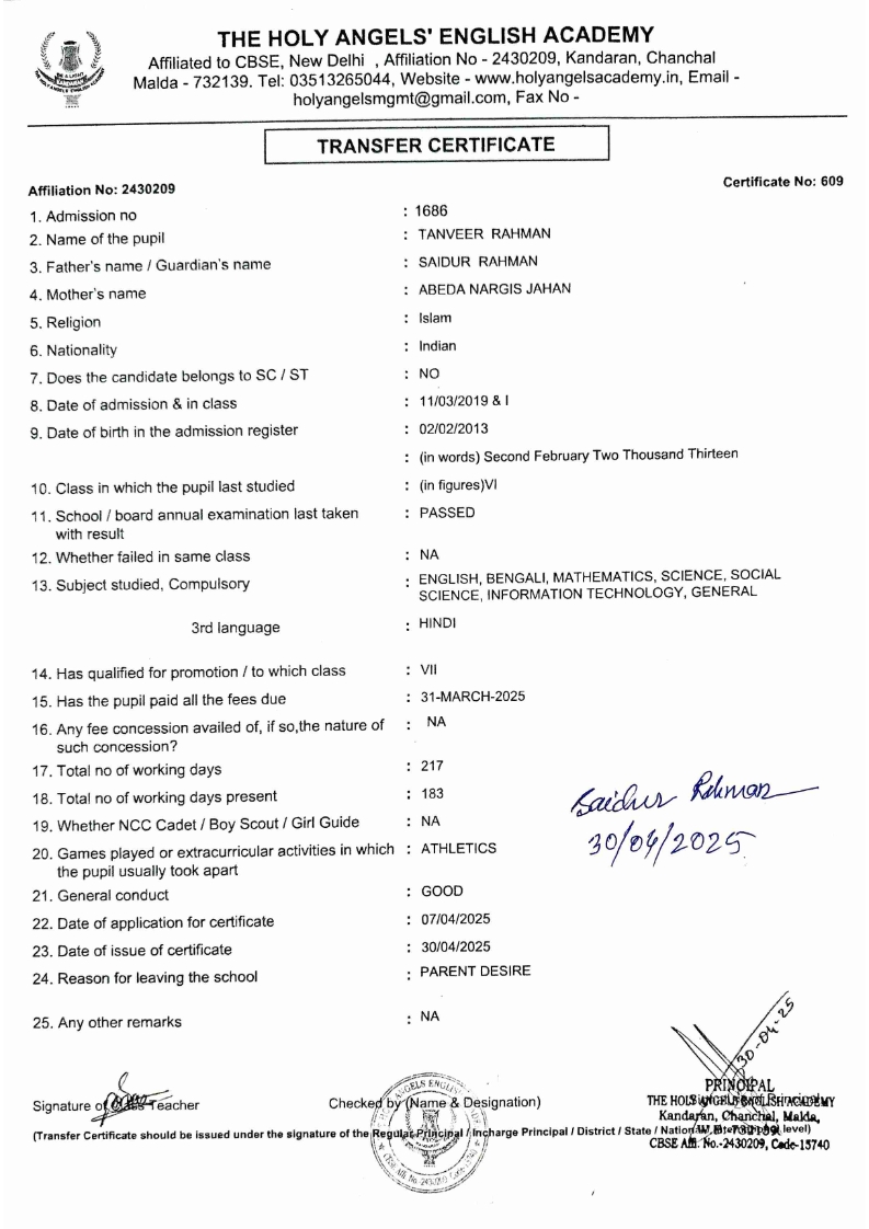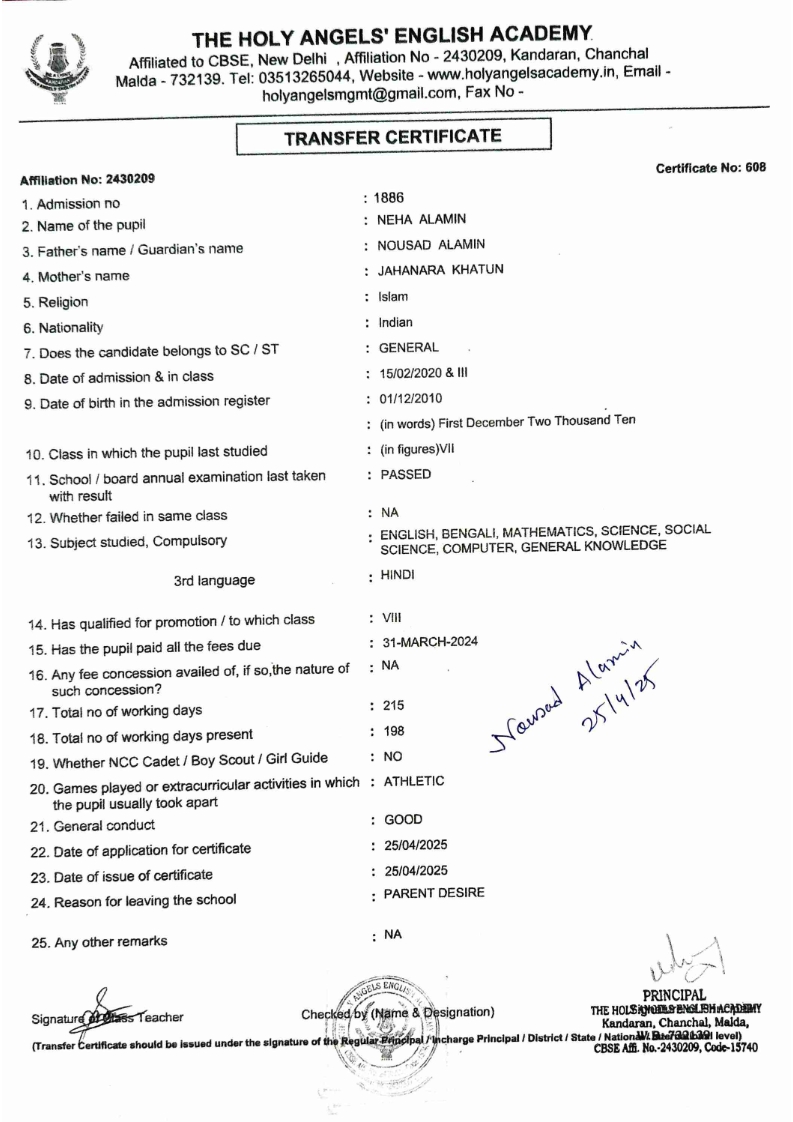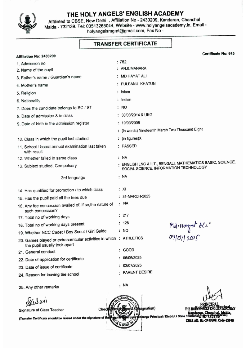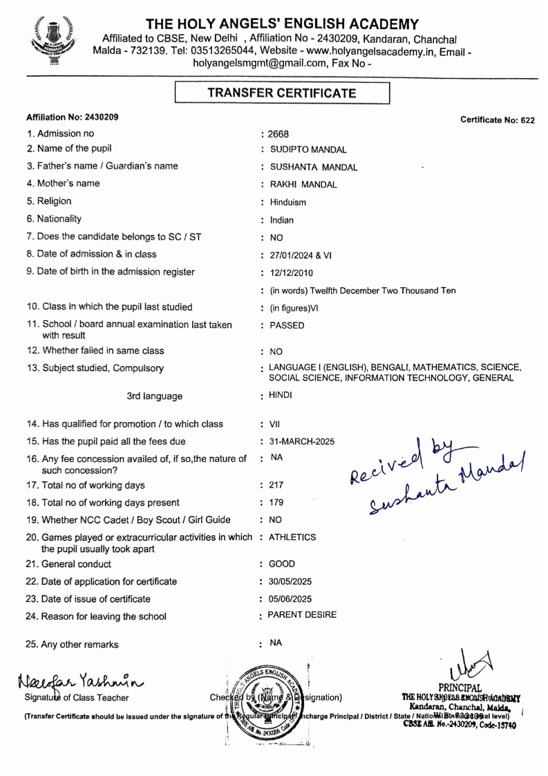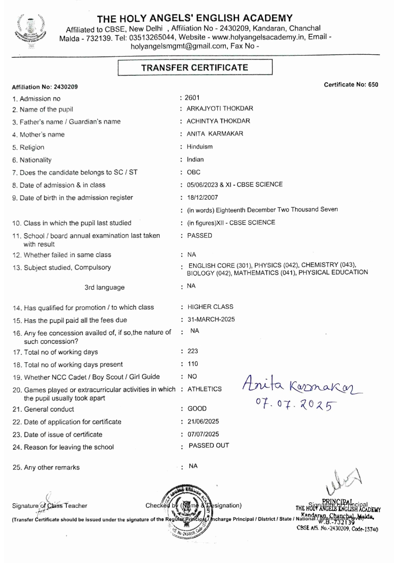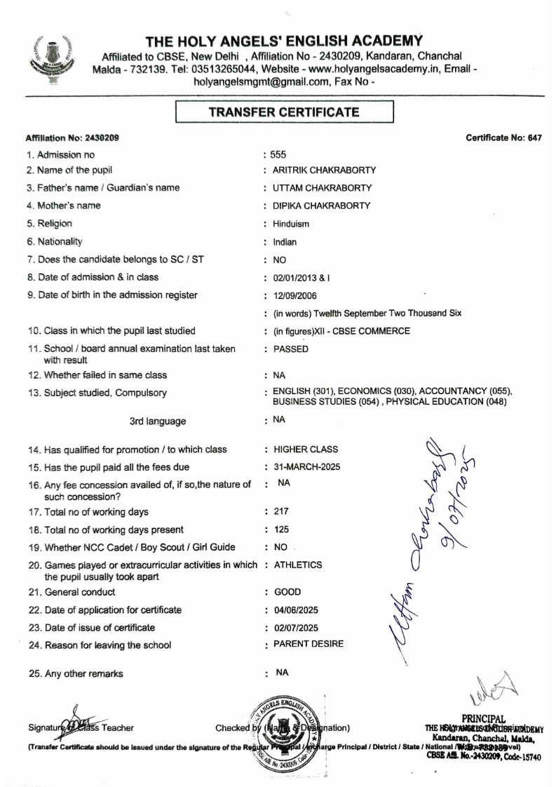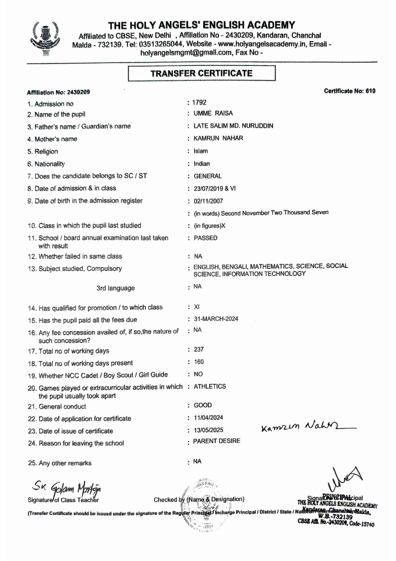 SLC Download TC link School Leaving Certificate : 2024-2026 587 ‒ AARAV MONDAL, Adm No: 1921 , IV - JUPITER Click to view 588 ‒ ADIY ABAN, Adm No: 2001 , IV - MARS Click to view 589 ‒ SHAKEEL AHMAD, Adm No: 2731 , IV - JUPITER Click to view 590 ‒ ALAFFAN ALAM, Adm No: 1086 , VII - ROHINI Click to view 591 ‒ AL NAFISH, Adm No: 2292 , VII - ARYABHATTA Click to view 592 ‒ SARAH SHAIKH, Adm No: 2445 , VI - BHASKAR Click to view 593 Click to view 594 ‒ MD ZISHAN, Adm No: 2267 , VI - ROHINI Click to view 595 ‒ AFEEZA PARVEEN, Adm No: 1273 , VIII - ROHINI Click to view 596 ‒ AYUSH SAHA, Adm No: 2314 , VII - BHASKAR Click to view 597 ‒ MD SAKIBULLAH, Adm No: 2243 , V - MARS Click to view 598 ‒ LALJIT MISRA, Adm No: 1339 , V - VENUS Click to view 599 ‒ ROMANA HOSSAIN, Adm No: 2833 , BALVATIKA-3 - LITTLE HEART Click to view 600 ‒ KAINAT HOSSAIN, Adm No: 2834 , III - JUPITER Click to view 601 ‒ MUNIRA YASMIN, Adm No: 2579 , I - LITTLE HEART Click to view 602 ‒ AYUSH CHOUDHURY, Adm No: 2523 , IV - MARS Click to view 603 Click to view 604 ‒ ALISHA SULTANA, Adm No: 2383 , I - LITTLE HEART Click to view 605 ‒ RUDRA DAS, Adm No: 1824 , V - VENUS Click to view 606 ‒ ARADHYA DAS, Adm No: 2444 , VI - ARYABHATTA Click to view 607 ‒ SUHANA AFROSE, Adm No: 806 , VIII - ARYABHATTA Click to view 608 Click to view 609 ‒ TANVEER RAHMAN, Adm No: 1686 , VI - ARYABHATTA Click to view 610 Click to view 611 ‒ AARADHYA SONI, Adm No: 2013 , X - ARYABHATTA Click to view 612 ‒ ANSHIKA AGARWAL, Adm No: 2782 , VII - BHASKAR Click to view 613 ‒ MAHAMUDA SULTANA, Adm No: 1408 , V - VENUS Click to view 614 ‒ SHAMMIN KHATUN, Adm No: 1173 , X - ROHINI Click to view 615 Click to view 616 ‒ SHUVANGI CHOUDHURY, Adm No: 779 , X - ARYABHATTA Click to view 617 ‒ ASIF IMRAN, Adm No: 2543 , X - ROHINI Click to view 618 ‒ JOYITA PAL, Adm No: 707 , X - ROHINI Click to view 619 ‒ MUSKAN SHARMA, Adm No: 1236 , X - ROHINI Click to view 620 ‒ RAMDEV KARMAKAR, Adm No: 911 , X - ARYABHATTA Click to view 621 ‒ MD AFRIDI KHAN, Adm No: 587 , X - ROHINI Click to view 622 ‒ SUDIPTO MANDAL, Adm No: 2668 , VI - BHASKAR Click to view 623 ‒ SHIBANGI DAS, Adm No: 745 , X - ROHINI Click to view 624 ‒ SAFIUR RAHAMAN, Adm No: 2276 , X - ROHINI Click to view 625 ‒ ASHISH KUMAR, Adm No: 1551 , X - ARYABHATTA Click to view 626 ‒ TUSAR PODDAR, Adm No: 908 , X - ARYABHATTA Click to view 627 ‒ JAYDEB MANDAL, Adm No: 723 , X - ARYABHATTA Click to view 628 ‒ MUDDASSIR HOQUE, Adm No: 1065 , X - ARYABHATTA Click to view 629 ‒ SUSHMITA DAS, Adm No: 1014 , X - ROHINI Click to view 630 ‒ TRISHA SAHAAdm No: 1854 , IV - MARS Click to view 631 ‒ MD SAKIB, Adm No: 2252 , IV - JUPITER Click to view 632 ‒ SHUBHANGI MANDAL, Adm No: 1582 , VI - BHASKAR Click to view 633 ‒ ARGHODEEP GOSWAMI, Adm No: 1552 , X - ARYABHATTA Click to view 634 ‒ AMMAR IBNE JAKIR, Adm No: 958 , X - ROHINI Click to view 635 ‒ MD FARHAN ISLAM, Adm No: 632 , X - ROHINI Click to view 636 ‒ MD. MUDDASIR, Adm No: 704 , X - ROHINI Click to view 637 ‒ PRATIK THOKDAR, Adm No: 307 , XII - CBSE SCIENCE - A Click to view 638 ‒ ANJALI RAJ, Adm No: 1790 , X - ROHINI Click to view 639 ‒ ASRAF ALI, Adm No: 544 , X - ARYABHATTA Click to view 640 ‒ MASUD ALAM, Adm No: 1036 , X - ARYABHATTA Click to view 641 ‒ MD. ZAFAR ALAM, Adm No: 1272 , X - ROHINI Click to view 642 ‒ MISKATUL ISLAM, Adm No: 1323 , X - ARYABHATTA Click to view 643 ‒ DEBRAJ GHOSH, Adm No: 636 , X - ROHINI Click to view 644 ‒ GULNAAJ PARVIN, Adm No: 2211 , X - ROHINI Click to view 645 ‒ ANJUMANARA, Adm No: 782 , X - ARYABHATTA Click to view 646 ‒ SADIA PERVIN, Adm No: 784 , X - ROHINI Click to view 647 Click to view 470-SHUVADEEP ROY Adm. No-2194, Class-IX Click to view 647 ‒ ARITRIK CHAKRABORTY, Adm No: 555 , XII - CBSE COMMERCE - A Click to view 648 ‒ SUBHASISH THOKDAR, Adm No: 977 , X - ROHINI Click to view 649 ‒ UTSAV ROY, Adm No: 617 , XII - CBSE SCIENCE - A Click to view 650 ‒ ARKAJYOTI THOKDAR, Adm No: 2601 , XII - CBSE SCIENCE - A Click to view 651 ‒ SHAHIN PARVEJ RANA, Adm No: 2409. , XII - CBSE ARTS - A Click to view 652 ‒ AMAN KUMAR, Adm No: 1197 , X - ARYABHATTA Click to view 653 ‒ NAJERA PARVIN, Adm No: 1279 , X - ROHINI Click to view 654 ‒ TRISHNA GUPTA, Adm No: 1335 , X - ARYABHATTA Click to view 655 ‒ SRISHTI KUMARI, Adm No: 2587 , X - ARYABHATTA Click to view 656 ‒ MANDEEP KUMAR, Adm No: 2611 , VII - BHASKAR Click to view 657 ‒ SNEHA CHATTERJEE, Adm No: 2563 , XII - CBSE SCIENCE - A Click to view 660 ‒ NAMIT AGARWAL, Adm No: 1392 , VI - ROHINI Click to view 661 ‒ TAPASYA AGARWALA, Adm No: 621 , X - ROHINI Click to view 662 ‒ NAJIL KHANAdm No: 1404 , XI - CBSE COMMERCE - A Click to view 663 ‒ TOHIDUR RAHAMAN, Adm No: 2593 , XII - CBSE SCIENCE - A Click to view 664 ‒ SUBHAM SARAF, Adm No: 2195 , X - ROHINI Click to view 665 ‒ SK. JISAN AHAMED, Adm No: 414 , XII - CBSE COMMERCE - A Click to view 666 ‒ SOHAN ANSARI, Adm No: 376 , XII - CBSE COMMERCE - A Click to view 667 ‒ JOYITA SINGHA, Adm No: 2075 , X - ARYABHATTA Click to view 668 ‒ BHUMIKA DAS, Adm No: 2558 , XII - CBSE COMMERCE - A Click to view 669 ‒ MD. ROUNAK ABRAR HOSSAIN, Adm No: 437 , XII - CBSE SCIENCE - A Click to view 670 ‒ ANKITA MANDAL, Adm No: 938 , X - ROHINI Click to view 671 ‒ KANKAN MANDAL, Adm No: 1919 , X - ROHINI Click to view 672 ‒ DEBOJYOTY RAM, Adm No: 768 , X - ROHINI Click to view 673 ‒ SUNNY MANDAL, Adm No: 720 , XII - CBSE COMMERCE - A Click to view 674 ‒ JUMAIL AHIL NIZAMI, Adm No: 2534 , X - ARYABHATTA Click to view 675 ‒ MD FARHAN, Adm No: 2160 , X - ARYABHATTA Click to view 676 ‒ AYUSH RAJ, Adm No: 385 , XII - CBSE SCIENCE - A Click to view 677 ‒ SAACHI JADAV, Adm No: 1577 , X - ARYABHATTA Click to view 678 ‒ ASGAR ALI, Adm No: 663 , X - ARYABHATTA Click to view 679 ‒ FAHAD MAHMOOD, Adm No: 919 , X - ROHINI Click to view 680 ‒ DAIWIK SINGHANIAAdm No: 1029 , IX - ROHINI Click to view 