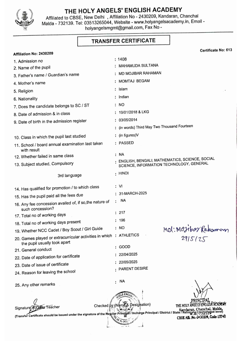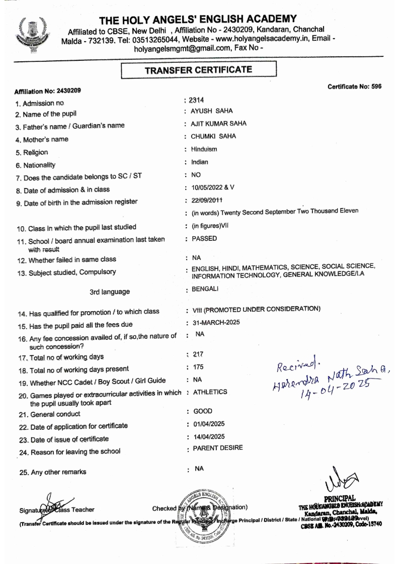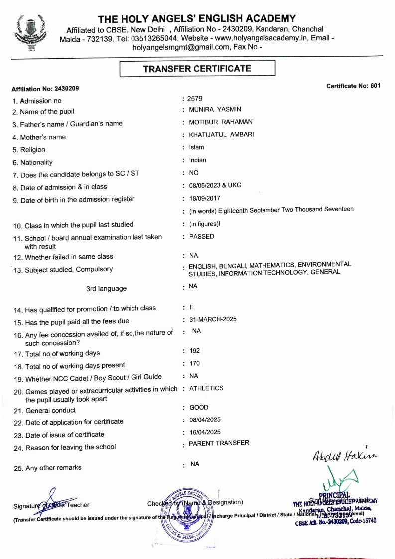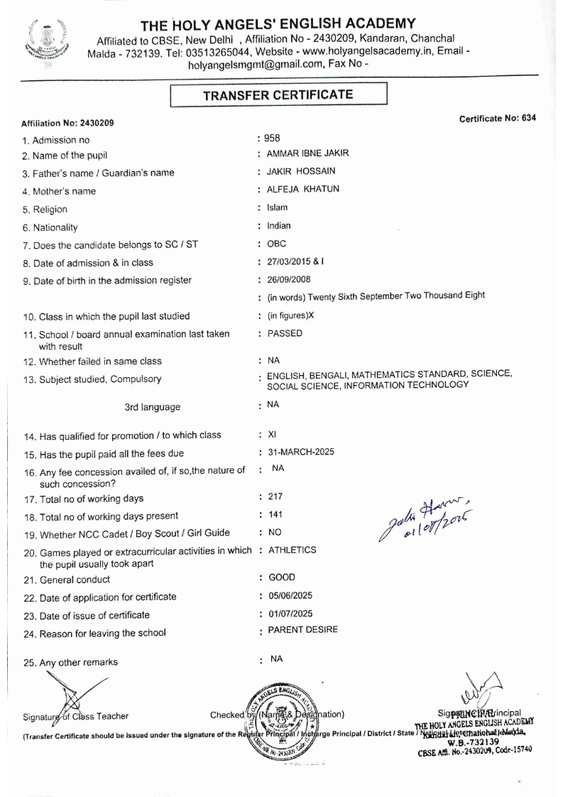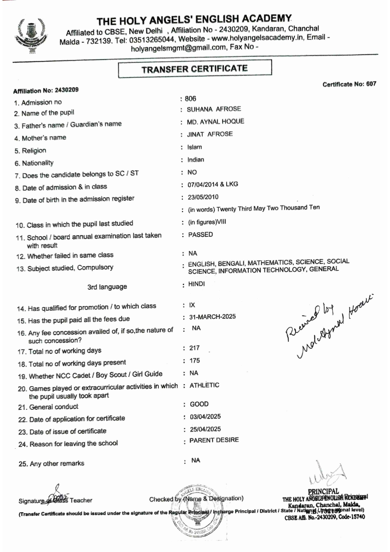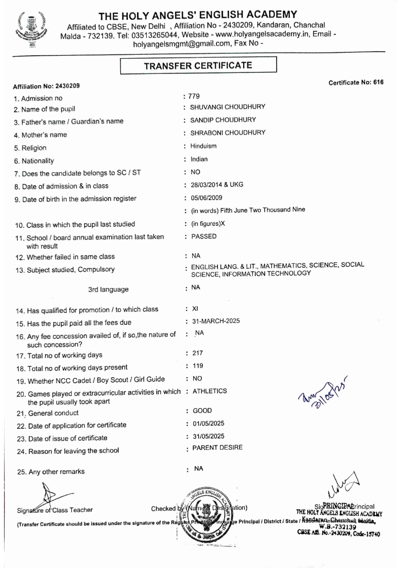 SLC Download TC link School Leaving Certificate : 2024-2026 587 ‒ AARAV MONDAL, Adm No: 1921 , IV - JUPITER Click to view 588 ‒ ADIY ABAN, Adm No: 2001 , IV - MARS Click to view 589 ‒ SHAKEEL AHMAD, Adm No: 2731 , IV - JUPITER Click to view 590 ‒ ALAFFAN ALAM, Adm No: 1086 , VII - ROHINI Click to view 591 ‒ AL NAFISH, Adm No: 2292 , VII - ARYABHATTA Click to view 592 ‒ SARAH SHAIKH, Adm No: 2445 , VI - BHASKAR Click to view 593 Click to view 594 ‒ MD ZISHAN, Adm No: 2267 , VI - ROHINI Click to view 595 ‒ AFEEZA PARVEEN, Adm No: 1273 , VIII - ROHINI Click to view 596 ‒ AYUSH SAHA, Adm No: 2314 , VII - BHASKAR Click to view 597 ‒ MD SAKIBULLAH, Adm No: 2243 , V - MARS Click to view 598 ‒ LALJIT MISRA, Adm No: 1339 , V - VENUS Click to view 599 ‒ ROMANA HOSSAIN, Adm No: 2833 , BALVATIKA-3 - LITTLE HEART Click to view 600 ‒ KAINAT HOSSAIN, Adm No: 2834 , III - JUPITER Click to view 601 ‒ MUNIRA YASMIN, Adm No: 2579 , I - LITTLE HEART Click to view 602 ‒ AYUSH CHOUDHURY, Adm No: 2523 , IV - MARS Click to view 603 Click to view 604 ‒ ALISHA SULTANA, Adm No: 2383 , I - LITTLE HEART Click to view 605 ‒ RUDRA DAS, Adm No: 1824 , V - VENUS Click to view 606 ‒ ARADHYA DAS, Adm No: 2444 , VI - ARYABHATTA Click to view 607 ‒ SUHANA AFROSE, Adm No: 806 , VIII - ARYABHATTA Click to view 608 Click to view 609 ‒ TANVEER RAHMAN, Adm No: 1686 , VI - ARYABHATTA Click to view 610 Click to view 611 ‒ AARADHYA SONI, Adm No: 2013 , X - ARYABHATTA Click to view 612 ‒ ANSHIKA AGARWAL, Adm No: 2782 , VII - BHASKAR Click to view 613 ‒ MAHAMUDA SULTANA, Adm No: 1408 , V - VENUS Click to view 614 ‒ SHAMMIN KHATUN, Adm No: 1173 , X - ROHINI Click to view 615 Click to view 616 ‒ SHUVANGI CHOUDHURY, Adm No: 779 , X - ARYABHATTA Click to view 617 ‒ ASIF IMRAN, Adm No: 2543 , X - ROHINI Click to view 618 ‒ JOYITA PAL, Adm No: 707 , X - ROHINI Click to view 619 ‒ MUSKAN SHARMA, Adm No: 1236 , X - ROHINI Click to view 620 ‒ RAMDEV KARMAKAR, Adm No: 911 , X - ARYABHATTA Click to view 621 ‒ MD AFRIDI KHAN, Adm No: 587 , X - ROHINI Click to view 622 ‒ SUDIPTO MANDAL, Adm No: 2668 , VI - BHASKAR Click to view 623 ‒ SHIBANGI DAS, Adm No: 745 , X - ROHINI Click to view 624 ‒ SAFIUR RAHAMAN, Adm No: 2276 , X - ROHINI Click to view 625 ‒ ASHISH KUMAR, Adm No: 1551 , X - ARYABHATTA Click to view 626 ‒ TUSAR PODDAR, Adm No: 908 , X - ARYABHATTA Click to view 627 ‒ JAYDEB MANDAL, Adm No: 723 , X - ARYABHATTA Click to view 628 ‒ MUDDASSIR HOQUE, Adm No: 1065 , X - ARYABHATTA Click to view 629 ‒ SUSHMITA DAS, Adm No: 1014 , X - ROHINI Click to view 630 ‒ TRISHA SAHAAdm No: 1854 , IV - MARS Click to view 631 ‒ MD SAKIB, Adm No: 2252 , IV - JUPITER Click to view 632 ‒ SHUBHANGI MANDAL, Adm No: 1582 , VI - BHASKAR Click to view 633 ‒ ARGHODEEP GOSWAMI, Adm No: 1552 , X - ARYABHATTA Click to view 634 ‒ AMMAR IBNE JAKIR, Adm No: 958 , X - ROHINI Click to view 635 ‒ MD FARHAN ISLAM, Adm No: 632 , X - ROHINI Click to view 636 ‒ MD. MUDDASIR, Adm No: 704 , X - ROHINI Click to view 637 ‒ PRATIK THOKDAR, Adm No: 307 , XII - CBSE SCIENCE - A Click to view 638 ‒ ANJALI RAJ, Adm No: 1790 , X - ROHINI Click to view 639 ‒ ASRAF ALI, Adm No: 544 , X - ARYABHATTA Click to view 640 ‒ MASUD ALAM, Adm No: 1036 , X - ARYABHATTA Click to view 641 ‒ MD. ZAFAR ALAM, Adm No: 1272 , X - ROHINI Click to view 642 ‒ MISKATUL ISLAM, Adm No: 1323 , X - ARYABHATTA Click to view 643 ‒ DEBRAJ GHOSH, Adm No: 636 , X - ROHINI Click to view 644 ‒ GULNAAJ PARVIN, Adm No: 2211 , X - ROHINI Click to view 645 ‒ ANJUMANARA, Adm No: 782 , X - ARYABHATTA Click to view 646 ‒ SADIA PERVIN, Adm No: 784 , X - ROHINI Click to view 647 Click to view 470-SHUVADEEP ROY Adm. No-2194, Class-IX Click to view 647 ‒ ARITRIK CHAKRABORTY, Adm No: 555 , XII - CBSE COMMERCE - A Click to view 648 ‒ SUBHASISH THOKDAR, Adm No: 977 , X - ROHINI Click to view 649 ‒ UTSAV ROY, Adm No: 617 , XII - CBSE SCIENCE - A Click to view 650 ‒ ARKAJYOTI THOKDAR, Adm No: 2601 , XII - CBSE SCIENCE - A Click to view 651 ‒ SHAHIN PARVEJ RANA, Adm No: 2409. , XII - CBSE ARTS - A Click to view 652 ‒ AMAN KUMAR, Adm No: 1197 , X - ARYABHATTA Click to view 653 ‒ NAJERA PARVIN, Adm No: 1279 , X - ROHINI Click to view 654 ‒ TRISHNA GUPTA, Adm No: 1335 , X - ARYABHATTA Click to view 655 ‒ SRISHTI KUMARI, Adm No: 2587 , X - ARYABHATTA Click to view 656 ‒ MANDEEP KUMAR, Adm No: 2611 , VII - BHASKAR Click to view 657 ‒ SNEHA CHATTERJEE, Adm No: 2563 , XII - CBSE SCIENCE - A Click to view 660 ‒ NAMIT AGARWAL, Adm No: 1392 , VI - ROHINI Click to view 661 ‒ TAPASYA AGARWALA, Adm No: 621 , X - ROHINI Click to view 662 ‒ NAJIL KHANAdm No: 1404 , XI - CBSE COMMERCE - A Click to view 663 ‒ TOHIDUR RAHAMAN, Adm No: 2593 , XII - CBSE SCIENCE - A Click to view 664 ‒ SUBHAM SARAF, Adm No: 2195 , X - ROHINI Click to view 665 ‒ SK. JISAN AHAMED, Adm No: 414 , XII - CBSE COMMERCE - A Click to view 666 ‒ SOHAN ANSARI, Adm No: 376 , XII - CBSE COMMERCE - A Click to view 667 ‒ JOYITA SINGHA, Adm No: 2075 , X - ARYABHATTA Click to view 668 ‒ BHUMIKA DAS, Adm No: 2558 , XII - CBSE COMMERCE - A Click to view 669 ‒ MD. ROUNAK ABRAR HOSSAIN, Adm No: 437 , XII - CBSE SCIENCE - A Click to view 670 ‒ ANKITA MANDAL, Adm No: 938 , X - ROHINI Click to view 671 ‒ KANKAN MANDAL, Adm No: 1919 , X - ROHINI Click to view 672 ‒ DEBOJYOTY RAM, Adm No: 768 , X - ROHINI Click to view 673 ‒ SUNNY MANDAL, Adm No: 720 , XII - CBSE COMMERCE - A Click to view 674 ‒ JUMAIL AHIL NIZAMI, Adm No: 2534 , X - ARYABHATTA Click to view 675 ‒ MD FARHAN, Adm No: 2160 , X - ARYABHATTA Click to view 676 ‒ AYUSH RAJ, Adm No: 385 , XII - CBSE SCIENCE - A Click to view 677 ‒ SAACHI JADAV, Adm No: 1577 , X - ARYABHATTA Click to view 678 ‒ ASGAR ALI, Adm No: 663 , X - ARYABHATTA Click to view 679 ‒ FAHAD MAHMOOD, Adm No: 919 , X - ROHINI Click to view 680 ‒ DAIWIK SINGHANIAAdm No: 1029 , IX - ROHINI Click to view 