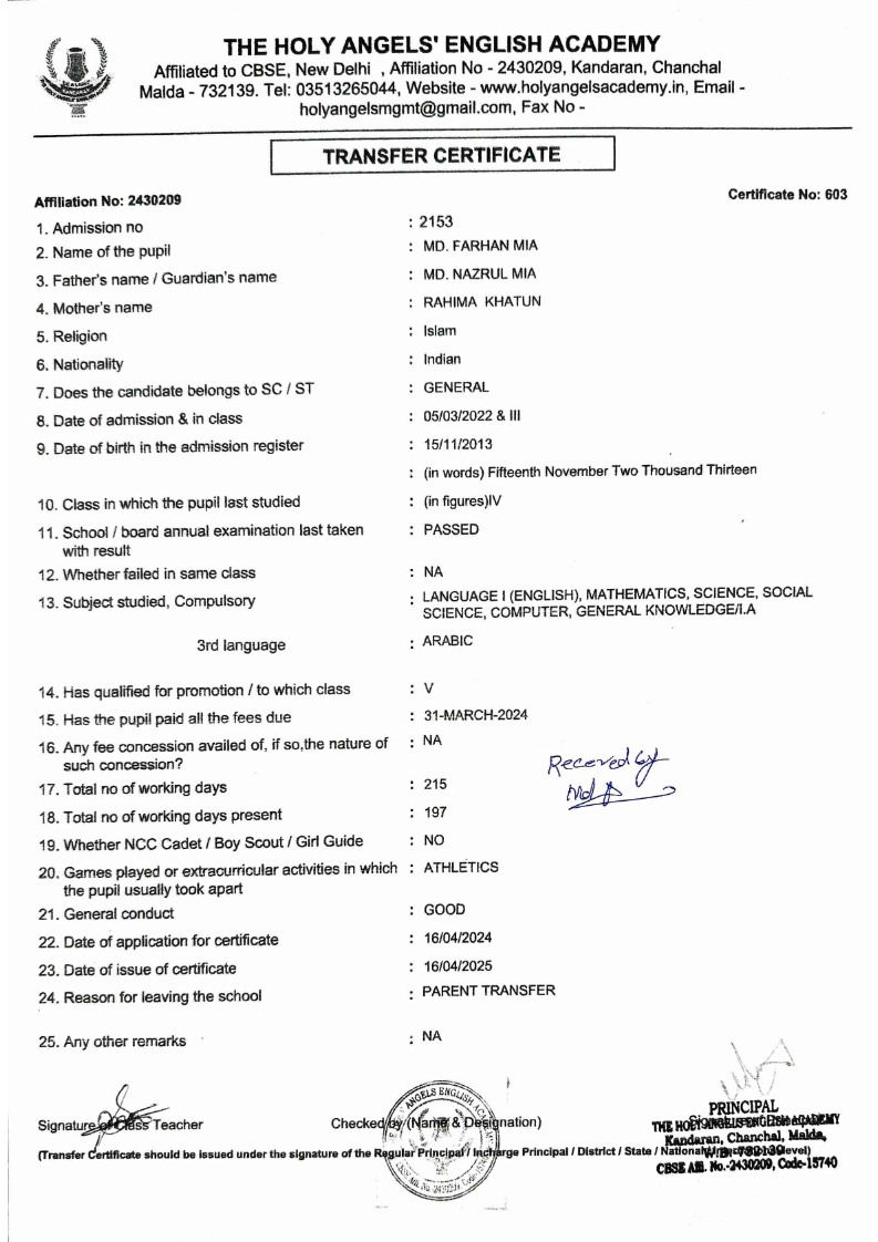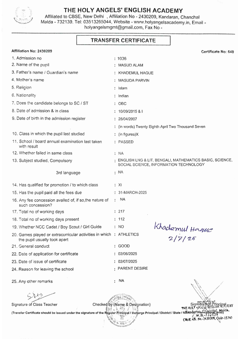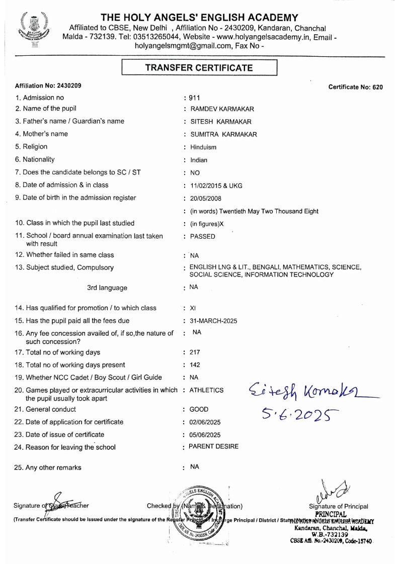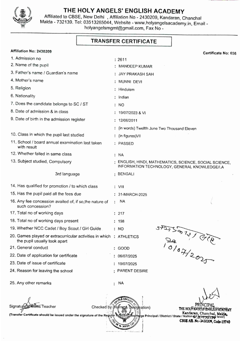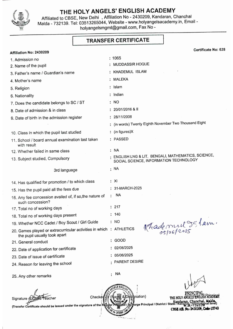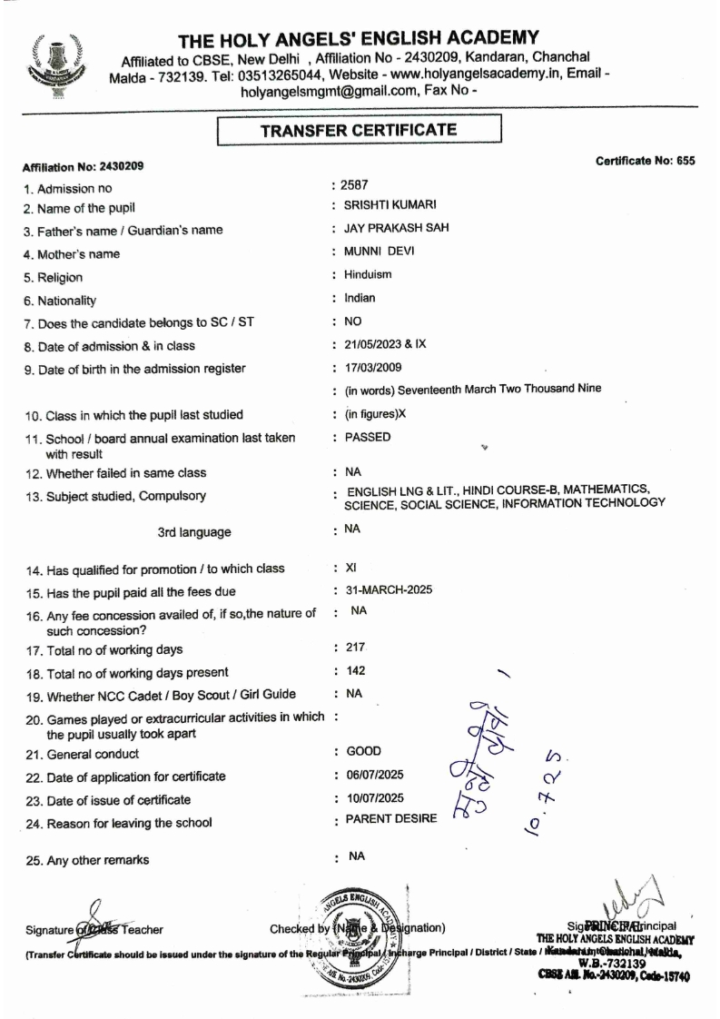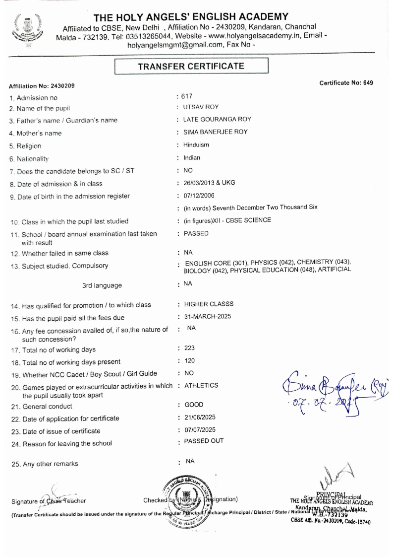 SLC Download TC link School Leaving Certificate : 2024-2026 587 ‒ AARAV MONDAL, Adm No: 1921 , IV - JUPITER Click to view 588 ‒ ADIY ABAN, Adm No: 2001 , IV - MARS Click to view 589 ‒ SHAKEEL AHMAD, Adm No: 2731 , IV - JUPITER Click to view 590 ‒ ALAFFAN ALAM, Adm No: 1086 , VII - ROHINI Click to view 591 ‒ AL NAFISH, Adm No: 2292 , VII - ARYABHATTA Click to view 592 ‒ SARAH SHAIKH, Adm No: 2445 , VI - BHASKAR Click to view 593 Click to view 594 ‒ MD ZISHAN, Adm No: 2267 , VI - ROHINI Click to view 595 ‒ AFEEZA PARVEEN, Adm No: 1273 , VIII - ROHINI Click to view 596 ‒ AYUSH SAHA, Adm No: 2314 , VII - BHASKAR Click to view 597 ‒ MD SAKIBULLAH, Adm No: 2243 , V - MARS Click to view 598 ‒ LALJIT MISRA, Adm No: 1339 , V - VENUS Click to view 599 ‒ ROMANA HOSSAIN, Adm No: 2833 , BALVATIKA-3 - LITTLE HEART Click to view 600 ‒ KAINAT HOSSAIN, Adm No: 2834 , III - JUPITER Click to view 601 ‒ MUNIRA YASMIN, Adm No: 2579 , I - LITTLE HEART Click to view 602 ‒ AYUSH CHOUDHURY, Adm No: 2523 , IV - MARS Click to view 603 Click to view 604 ‒ ALISHA SULTANA, Adm No: 2383 , I - LITTLE HEART Click to view 605 ‒ RUDRA DAS, Adm No: 1824 , V - VENUS Click to view 606 ‒ ARADHYA DAS, Adm No: 2444 , VI - ARYABHATTA Click to view 607 ‒ SUHANA AFROSE, Adm No: 806 , VIII - ARYABHATTA Click to view 608 Click to view 609 ‒ TANVEER RAHMAN, Adm No: 1686 , VI - ARYABHATTA Click to view 610 Click to view 611 ‒ AARADHYA SONI, Adm No: 2013 , X - ARYABHATTA Click to view 612 ‒ ANSHIKA AGARWAL, Adm No: 2782 , VII - BHASKAR Click to view 613 ‒ MAHAMUDA SULTANA, Adm No: 1408 , V - VENUS Click to view 614 ‒ SHAMMIN KHATUN, Adm No: 1173 , X - ROHINI Click to view 615 Click to view 616 ‒ SHUVANGI CHOUDHURY, Adm No: 779 , X - ARYABHATTA Click to view 617 ‒ ASIF IMRAN, Adm No: 2543 , X - ROHINI Click to view 618 ‒ JOYITA PAL, Adm No: 707 , X - ROHINI Click to view 619 ‒ MUSKAN SHARMA, Adm No: 1236 , X - ROHINI Click to view 620 ‒ RAMDEV KARMAKAR, Adm No: 911 , X - ARYABHATTA Click to view 621 ‒ MD AFRIDI KHAN, Adm No: 587 , X - ROHINI Click to view 622 ‒ SUDIPTO MANDAL, Adm No: 2668 , VI - BHASKAR Click to view 623 ‒ SHIBANGI DAS, Adm No: 745 , X - ROHINI Click to view 624 ‒ SAFIUR RAHAMAN, Adm No: 2276 , X - ROHINI Click to view 625 ‒ ASHISH KUMAR, Adm No: 1551 , X - ARYABHATTA Click to view 626 ‒ TUSAR PODDAR, Adm No: 908 , X - ARYABHATTA Click to view 627 ‒ JAYDEB MANDAL, Adm No: 723 , X - ARYABHATTA Click to view 628 ‒ MUDDASSIR HOQUE, Adm No: 1065 , X - ARYABHATTA Click to view 629 ‒ SUSHMITA DAS, Adm No: 1014 , X - ROHINI Click to view 630 ‒ TRISHA SAHAAdm No: 1854 , IV - MARS Click to view 631 ‒ MD SAKIB, Adm No: 2252 , IV - JUPITER Click to view 632 ‒ SHUBHANGI MANDAL, Adm No: 1582 , VI - BHASKAR Click to view 633 ‒ ARGHODEEP GOSWAMI, Adm No: 1552 , X - ARYABHATTA Click to view 634 ‒ AMMAR IBNE JAKIR, Adm No: 958 , X - ROHINI Click to view 635 ‒ MD FARHAN ISLAM, Adm No: 632 , X - ROHINI Click to view 636 ‒ MD. MUDDASIR, Adm No: 704 , X - ROHINI Click to view 637 ‒ PRATIK THOKDAR, Adm No: 307 , XII - CBSE SCIENCE - A Click to view 638 ‒ ANJALI RAJ, Adm No: 1790 , X - ROHINI Click to view 639 ‒ ASRAF ALI, Adm No: 544 , X - ARYABHATTA Click to view 640 ‒ MASUD ALAM, Adm No: 1036 , X - ARYABHATTA Click to view 641 ‒ MD. ZAFAR ALAM, Adm No: 1272 , X - ROHINI Click to view 642 ‒ MISKATUL ISLAM, Adm No: 1323 , X - ARYABHATTA Click to view 643 ‒ DEBRAJ GHOSH, Adm No: 636 , X - ROHINI Click to view 644 ‒ GULNAAJ PARVIN, Adm No: 2211 , X - ROHINI Click to view 645 ‒ ANJUMANARA, Adm No: 782 , X - ARYABHATTA Click to view 646 ‒ SADIA PERVIN, Adm No: 784 , X - ROHINI Click to view 647 Click to view 470-SHUVADEEP ROY Adm. No-2194, Class-IX Click to view 647 ‒ ARITRIK CHAKRABORTY, Adm No: 555 , XII - CBSE COMMERCE - A Click to view 648 ‒ SUBHASISH THOKDAR, Adm No: 977 , X - ROHINI Click to view 649 ‒ UTSAV ROY, Adm No: 617 , XII - CBSE SCIENCE - A Click to view 650 ‒ ARKAJYOTI THOKDAR, Adm No: 2601 , XII - CBSE SCIENCE - A Click to view 651 ‒ SHAHIN PARVEJ RANA, Adm No: 2409. , XII - CBSE ARTS - A Click to view 652 ‒ AMAN KUMAR, Adm No: 1197 , X - ARYABHATTA Click to view 653 ‒ NAJERA PARVIN, Adm No: 1279 , X - ROHINI Click to view 654 ‒ TRISHNA GUPTA, Adm No: 1335 , X - ARYABHATTA Click to view 655 ‒ SRISHTI KUMARI, Adm No: 2587 , X - ARYABHATTA Click to view 656 ‒ MANDEEP KUMAR, Adm No: 2611 , VII - BHASKAR Click to view 657 ‒ SNEHA CHATTERJEE, Adm No: 2563 , XII - CBSE SCIENCE - A Click to view 660 ‒ NAMIT AGARWAL, Adm No: 1392 , VI - ROHINI Click to view 661 ‒ TAPASYA AGARWALA, Adm No: 621 , X - ROHINI Click to view 662 ‒ NAJIL KHANAdm No: 1404 , XI - CBSE COMMERCE - A Click to view 663 ‒ TOHIDUR RAHAMAN, Adm No: 2593 , XII - CBSE SCIENCE - A Click to view 664 ‒ SUBHAM SARAF, Adm No: 2195 , X - ROHINI Click to view 665 ‒ SK. JISAN AHAMED, Adm No: 414 , XII - CBSE COMMERCE - A Click to view 666 ‒ SOHAN ANSARI, Adm No: 376 , XII - CBSE COMMERCE - A Click to view 667 ‒ JOYITA SINGHA, Adm No: 2075 , X - ARYABHATTA Click to view 668 ‒ BHUMIKA DAS, Adm No: 2558 , XII - CBSE COMMERCE - A Click to view 669 ‒ MD. ROUNAK ABRAR HOSSAIN, Adm No: 437 , XII - CBSE SCIENCE - A Click to view 670 ‒ ANKITA MANDAL, Adm No: 938 , X - ROHINI Click to view 671 ‒ KANKAN MANDAL, Adm No: 1919 , X - ROHINI Click to view 672 ‒ DEBOJYOTY RAM, Adm No: 768 , X - ROHINI Click to view 673 ‒ SUNNY MANDAL, Adm No: 720 , XII - CBSE COMMERCE - A Click to view 674 ‒ JUMAIL AHIL NIZAMI, Adm No: 2534 , X - ARYABHATTA Click to view 675 ‒ MD FARHAN, Adm No: 2160 , X - ARYABHATTA Click to view 676 ‒ AYUSH RAJ, Adm No: 385 , XII - CBSE SCIENCE - A Click to view 677 ‒ SAACHI JADAV, Adm No: 1577 , X - ARYABHATTA Click to view 678 ‒ ASGAR ALI, Adm No: 663 , X - ARYABHATTA Click to view 679 ‒ FAHAD MAHMOOD, Adm No: 919 , X - ROHINI Click to view 680 ‒ DAIWIK SINGHANIAAdm No: 1029 , IX - ROHINI Click to view 