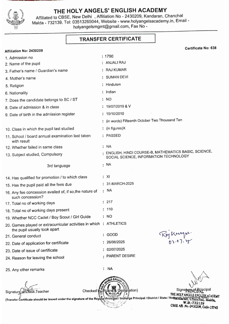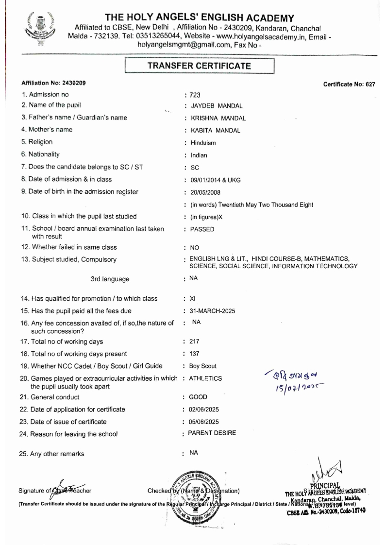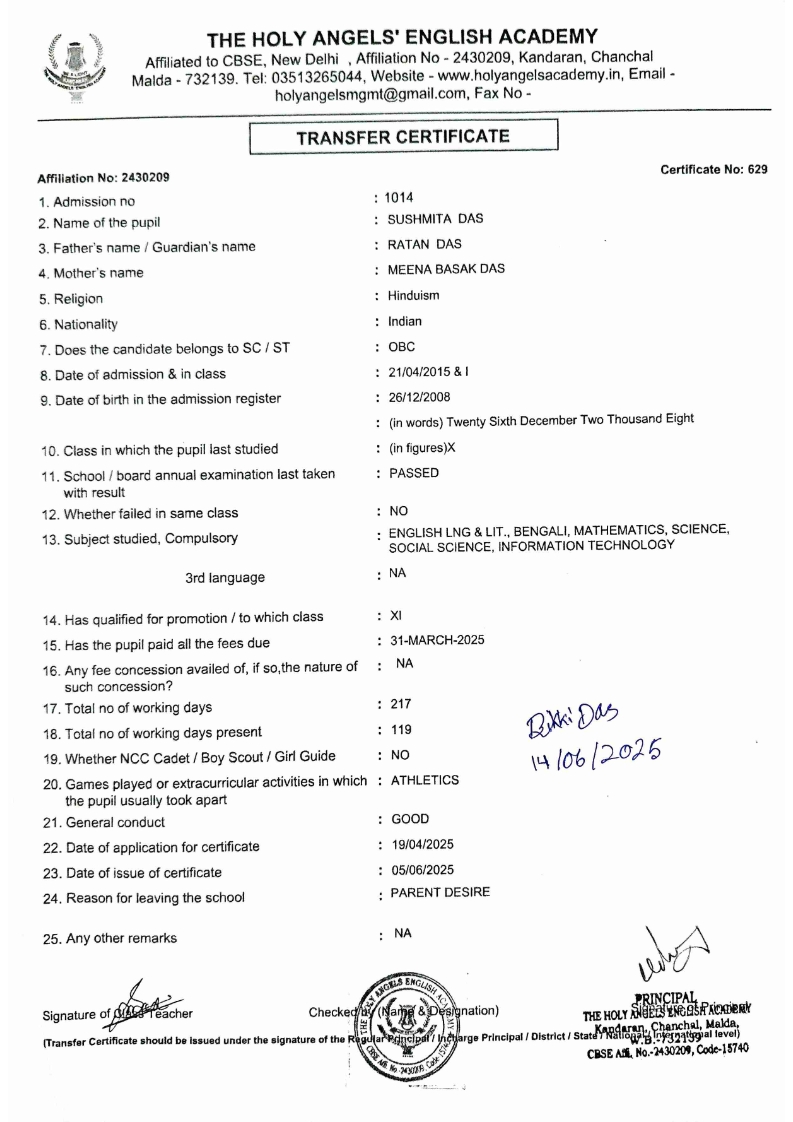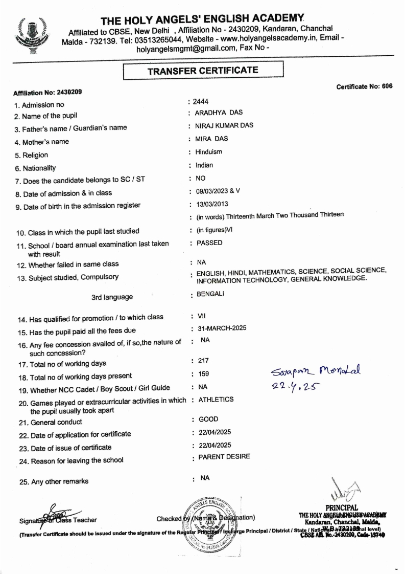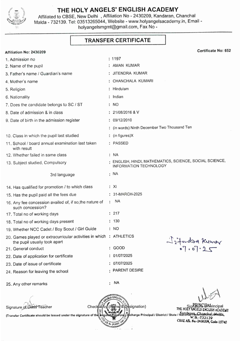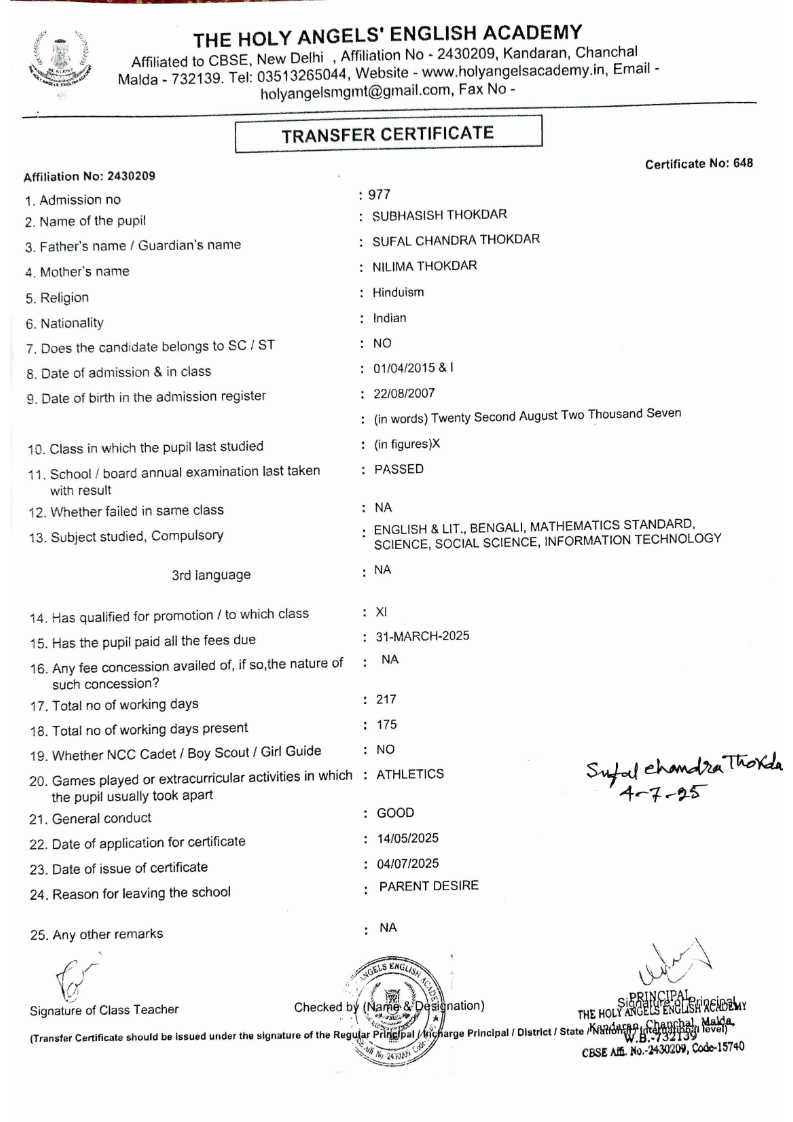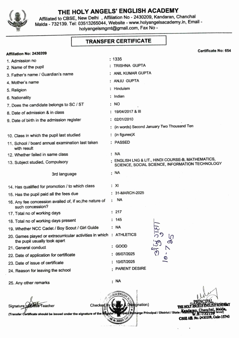 SLC Download TC link School Leaving Certificate : 2024-2026 587 ‒ AARAV MONDAL, Adm No: 1921 , IV - JUPITER Click to view 588 ‒ ADIY ABAN, Adm No: 2001 , IV - MARS Click to view 589 ‒ SHAKEEL AHMAD, Adm No: 2731 , IV - JUPITER Click to view 590 ‒ ALAFFAN ALAM, Adm No: 1086 , VII - ROHINI Click to view 591 ‒ AL NAFISH, Adm No: 2292 , VII - ARYABHATTA Click to view 592 ‒ SARAH SHAIKH, Adm No: 2445 , VI - BHASKAR Click to view 593 Click to view 594 ‒ MD ZISHAN, Adm No: 2267 , VI - ROHINI Click to view 595 ‒ AFEEZA PARVEEN, Adm No: 1273 , VIII - ROHINI Click to view 596 ‒ AYUSH SAHA, Adm No: 2314 , VII - BHASKAR Click to view 597 ‒ MD SAKIBULLAH, Adm No: 2243 , V - MARS Click to view 598 ‒ LALJIT MISRA, Adm No: 1339 , V - VENUS Click to view 599 ‒ ROMANA HOSSAIN, Adm No: 2833 , BALVATIKA-3 - LITTLE HEART Click to view 600 ‒ KAINAT HOSSAIN, Adm No: 2834 , III - JUPITER Click to view 601 ‒ MUNIRA YASMIN, Adm No: 2579 , I - LITTLE HEART Click to view 602 ‒ AYUSH CHOUDHURY, Adm No: 2523 , IV - MARS Click to view 603 Click to view 604 ‒ ALISHA SULTANA, Adm No: 2383 , I - LITTLE HEART Click to view 605 ‒ RUDRA DAS, Adm No: 1824 , V - VENUS Click to view 606 ‒ ARADHYA DAS, Adm No: 2444 , VI - ARYABHATTA Click to view 607 ‒ SUHANA AFROSE, Adm No: 806 , VIII - ARYABHATTA Click to view 608 Click to view 609 ‒ TANVEER RAHMAN, Adm No: 1686 , VI - ARYABHATTA Click to view 610 Click to view 611 ‒ AARADHYA SONI, Adm No: 2013 , X - ARYABHATTA Click to view 612 ‒ ANSHIKA AGARWAL, Adm No: 2782 , VII - BHASKAR Click to view 613 ‒ MAHAMUDA SULTANA, Adm No: 1408 , V - VENUS Click to view 614 ‒ SHAMMIN KHATUN, Adm No: 1173 , X - ROHINI Click to view 615 Click to view 616 ‒ SHUVANGI CHOUDHURY, Adm No: 779 , X - ARYABHATTA Click to view 617 ‒ ASIF IMRAN, Adm No: 2543 , X - ROHINI Click to view 618 ‒ JOYITA PAL, Adm No: 707 , X - ROHINI Click to view 619 ‒ MUSKAN SHARMA, Adm No: 1236 , X - ROHINI Click to view 620 ‒ RAMDEV KARMAKAR, Adm No: 911 , X - ARYABHATTA Click to view 621 ‒ MD AFRIDI KHAN, Adm No: 587 , X - ROHINI Click to view 622 ‒ SUDIPTO MANDAL, Adm No: 2668 , VI - BHASKAR Click to view 623 ‒ SHIBANGI DAS, Adm No: 745 , X - ROHINI Click to view 624 ‒ SAFIUR RAHAMAN, Adm No: 2276 , X - ROHINI Click to view 625 ‒ ASHISH KUMAR, Adm No: 1551 , X - ARYABHATTA Click to view 626 ‒ TUSAR PODDAR, Adm No: 908 , X - ARYABHATTA Click to view 627 ‒ JAYDEB MANDAL, Adm No: 723 , X - ARYABHATTA Click to view 628 ‒ MUDDASSIR HOQUE, Adm No: 1065 , X - ARYABHATTA Click to view 629 ‒ SUSHMITA DAS, Adm No: 1014 , X - ROHINI Click to view 630 ‒ TRISHA SAHAAdm No: 1854 , IV - MARS Click to view 631 ‒ MD SAKIB, Adm No: 2252 , IV - JUPITER Click to view 632 ‒ SHUBHANGI MANDAL, Adm No: 1582 , VI - BHASKAR Click to view 633 ‒ ARGHODEEP GOSWAMI, Adm No: 1552 , X - ARYABHATTA Click to view 634 ‒ AMMAR IBNE JAKIR, Adm No: 958 , X - ROHINI Click to view 635 ‒ MD FARHAN ISLAM, Adm No: 632 , X - ROHINI Click to view 636 ‒ MD. MUDDASIR, Adm No: 704 , X - ROHINI Click to view 637 ‒ PRATIK THOKDAR, Adm No: 307 , XII - CBSE SCIENCE - A Click to view 638 ‒ ANJALI RAJ, Adm No: 1790 , X - ROHINI Click to view 639 ‒ ASRAF ALI, Adm No: 544 , X - ARYABHATTA Click to view 640 ‒ MASUD ALAM, Adm No: 1036 , X - ARYABHATTA Click to view 641 ‒ MD. ZAFAR ALAM, Adm No: 1272 , X - ROHINI Click to view 642 ‒ MISKATUL ISLAM, Adm No: 1323 , X - ARYABHATTA Click to view 643 ‒ DEBRAJ GHOSH, Adm No: 636 , X - ROHINI Click to view 644 ‒ GULNAAJ PARVIN, Adm No: 2211 , X - ROHINI Click to view 645 ‒ ANJUMANARA, Adm No: 782 , X - ARYABHATTA Click to view 646 ‒ SADIA PERVIN, Adm No: 784 , X - ROHINI Click to view 647 Click to view 470-SHUVADEEP ROY Adm. No-2194, Class-IX Click to view 647 ‒ ARITRIK CHAKRABORTY, Adm No: 555 , XII - CBSE COMMERCE - A Click to view 648 ‒ SUBHASISH THOKDAR, Adm No: 977 , X - ROHINI Click to view 649 ‒ UTSAV ROY, Adm No: 617 , XII - CBSE SCIENCE - A Click to view 650 ‒ ARKAJYOTI THOKDAR, Adm No: 2601 , XII - CBSE SCIENCE - A Click to view 651 ‒ SHAHIN PARVEJ RANA, Adm No: 2409. , XII - CBSE ARTS - A Click to view 652 ‒ AMAN KUMAR, Adm No: 1197 , X - ARYABHATTA Click to view 653 ‒ NAJERA PARVIN, Adm No: 1279 , X - ROHINI Click to view 654 ‒ TRISHNA GUPTA, Adm No: 1335 , X - ARYABHATTA Click to view 655 ‒ SRISHTI KUMARI, Adm No: 2587 , X - ARYABHATTA Click to view 656 ‒ MANDEEP KUMAR, Adm No: 2611 , VII - BHASKAR Click to view 657 ‒ SNEHA CHATTERJEE, Adm No: 2563 , XII - CBSE SCIENCE - A Click to view 660 ‒ NAMIT AGARWAL, Adm No: 1392 , VI - ROHINI Click to view 661 ‒ TAPASYA AGARWALA, Adm No: 621 , X - ROHINI Click to view 662 ‒ NAJIL KHANAdm No: 1404 , XI - CBSE COMMERCE - A Click to view 663 ‒ TOHIDUR RAHAMAN, Adm No: 2593 , XII - CBSE SCIENCE - A Click to view 664 ‒ SUBHAM SARAF, Adm No: 2195 , X - ROHINI Click to view 665 ‒ SK. JISAN AHAMED, Adm No: 414 , XII - CBSE COMMERCE - A Click to view 666 ‒ SOHAN ANSARI, Adm No: 376 , XII - CBSE COMMERCE - A Click to view 667 ‒ JOYITA SINGHA, Adm No: 2075 , X - ARYABHATTA Click to view 668 ‒ BHUMIKA DAS, Adm No: 2558 , XII - CBSE COMMERCE - A Click to view 669 ‒ MD. ROUNAK ABRAR HOSSAIN, Adm No: 437 , XII - CBSE SCIENCE - A Click to view 670 ‒ ANKITA MANDAL, Adm No: 938 , X - ROHINI Click to view 671 ‒ KANKAN MANDAL, Adm No: 1919 , X - ROHINI Click to view 672 ‒ DEBOJYOTY RAM, Adm No: 768 , X - ROHINI Click to view 673 ‒ SUNNY MANDAL, Adm No: 720 , XII - CBSE COMMERCE - A Click to view 674 ‒ JUMAIL AHIL NIZAMI, Adm No: 2534 , X - ARYABHATTA Click to view 675 ‒ MD FARHAN, Adm No: 2160 , X - ARYABHATTA Click to view 676 ‒ AYUSH RAJ, Adm No: 385 , XII - CBSE SCIENCE - A Click to view 677 ‒ SAACHI JADAV, Adm No: 1577 , X - ARYABHATTA Click to view 678 ‒ ASGAR ALI, Adm No: 663 , X - ARYABHATTA Click to view 679 ‒ FAHAD MAHMOOD, Adm No: 919 , X - ROHINI Click to view 680 ‒ DAIWIK SINGHANIAAdm No: 1029 , IX - ROHINI Click to view 